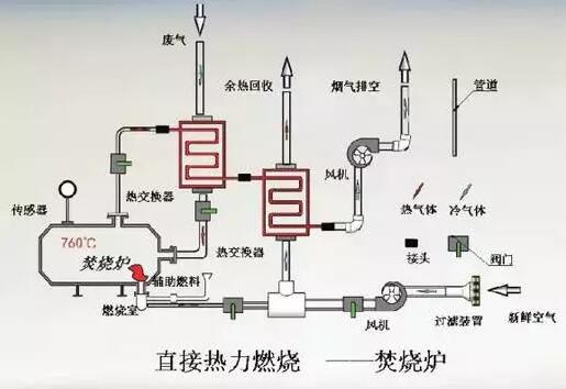 間壁式熱氧化是用列管或板式間壁換熱器來捕獲凈化排放氣的熱量,它可以回收40%-70%的熱能,并用回收的熱量來預(yù)熱進入氧化系統(tǒng)的有機廢氣。預(yù)熱后的廢氣再通過火焰來達到氧化溫度,進行凈化,間壁換熱的缺點是熱回收效率不高。